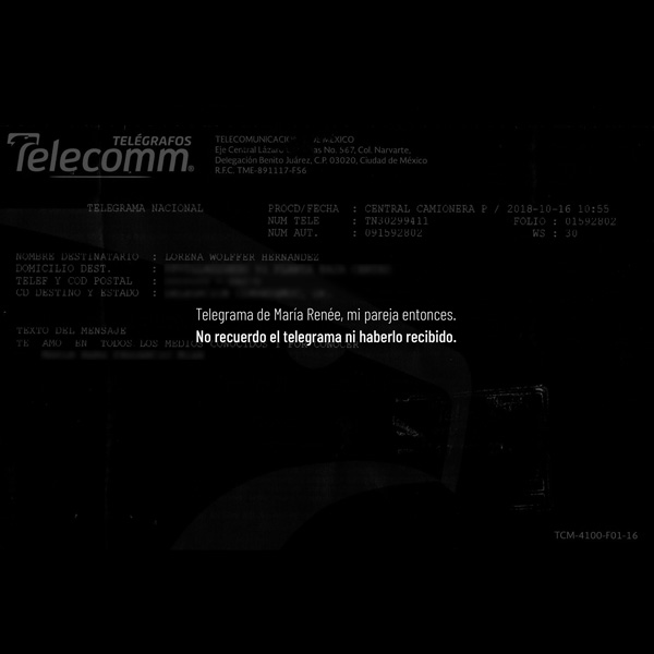 El recorrido cartográfico que iniciamos con Desmemorias conforma la antesala de los tres vídeos que presenta Lorena Wolffer como parte de su archivo personal. En ellos se relata una historia que ya intuíamos: abuso, hipersexualización, cosificación, vulnerabilidad. Es entonces cuando comenzamos a comprender que aquellos gestos desmemoriados son huellas situadas en una cadena de acontecimientos. Los relatos testimoniales, en las tres piezas, acompañan velando y desvelando con un ritmo nervioso y constante, a través de sonidos que incomodan o silencios que duelen.